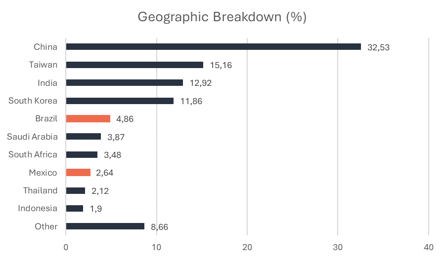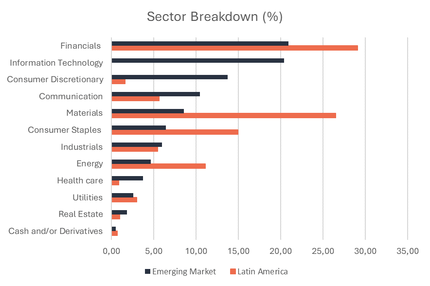 Investing in the region’s digitalization through ETFs appears feasible. The information technology sector in the region is a niche market and probably too small for a dedicated ETF exclusively on Latin American tech companies. Nonetheless, this prompts the question of why these tech companies are not in the underlying index of broader ETFs on Latin American economies.