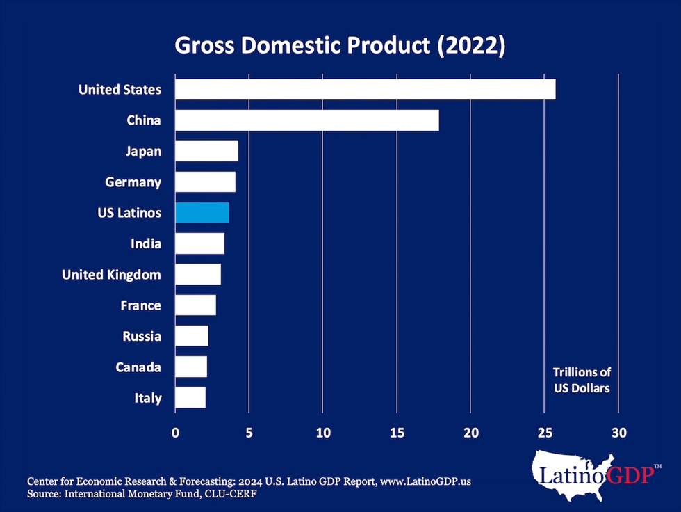 While Brazil’s population of 212 million is more than three times the size of the 62 million Latinos living in the U.S., its economy, with a GDP of $2.3 trillion, lags significantly behind. Brazil doesn’t even rank among the world’s top ten economies. Meanwhile, U.S. Latinos are on track to surpass Japan and Germany, potentially becoming the third-largest economy globally by 2027—or even sooner. This economic trajectory underscores the remarkable growth and influence of Latinos in the United States.
